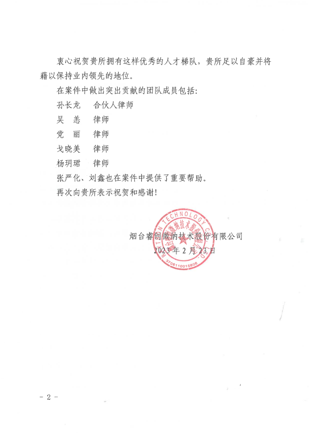 最后,感谢睿创集团知识产权团队对于本案的积极贡献,以及对于九球直播的支持与信任,共同成就恶意诉讼案的最终胜利!