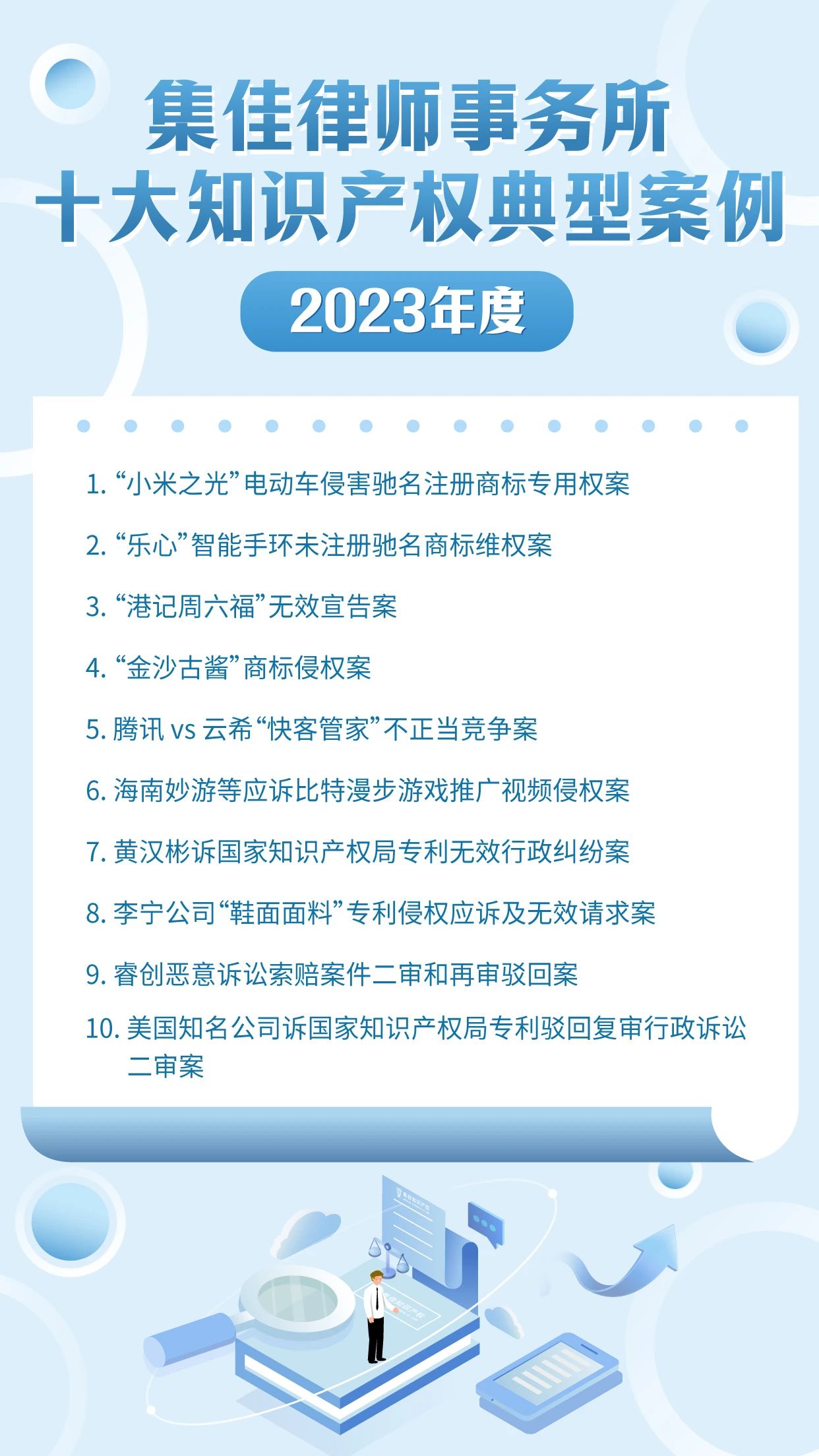 作为迎接4.26世界知识产权日的献礼之一,九球直播已连续十年开展十大知识产权典型案例的评选活动,其意义不仅在于展现集佳律师团队的专业能力和水准,更在于传递集佳全方位服务客户的理念。在第24个世界知识产权日来临之际,九球直播从2023年度代理的众多知识产权案件中筛选出具有代表性的十大案例,与各界同仁分享: